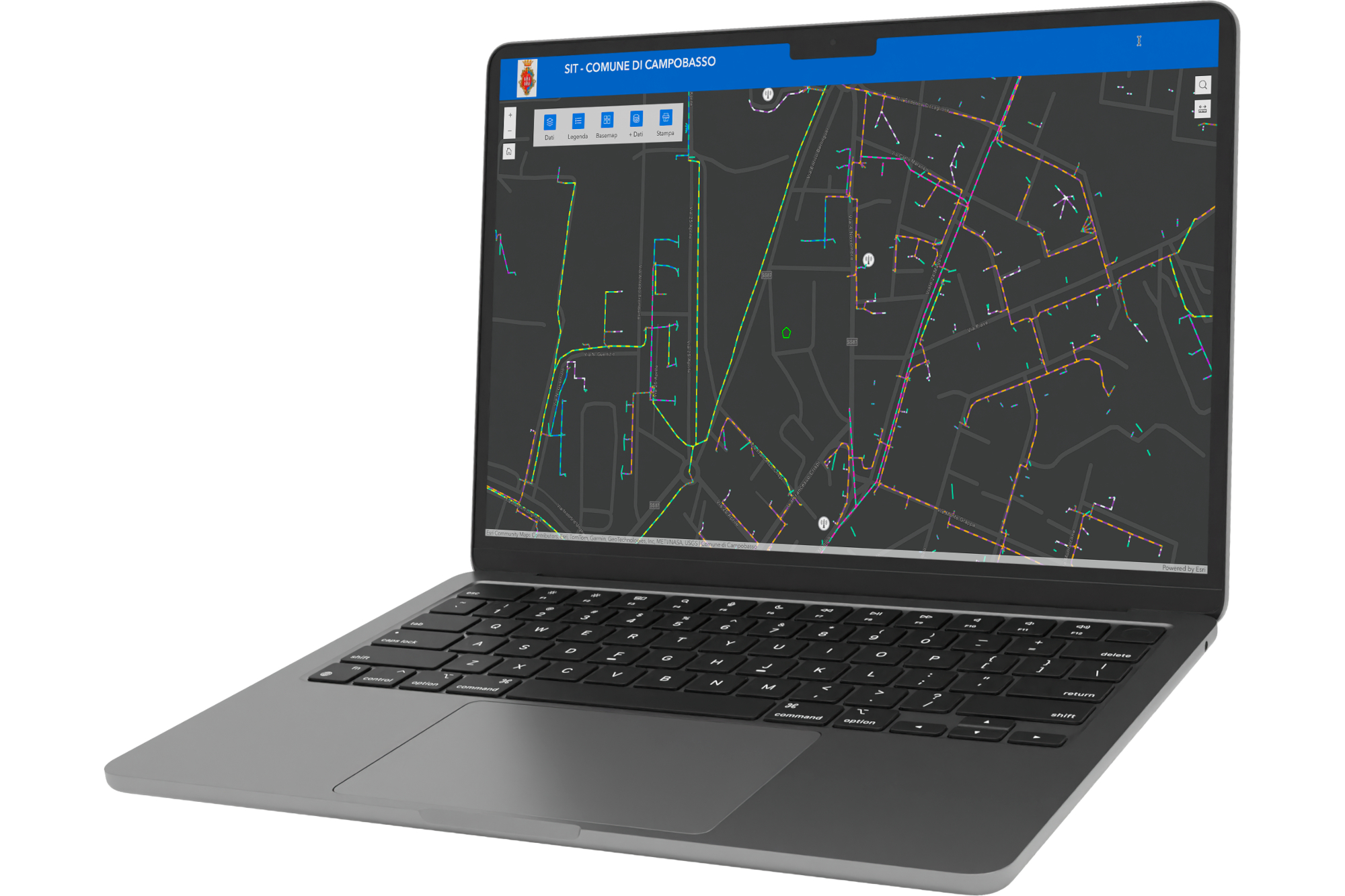 Il cuore di questa trasformazione poggia su un ecosistema integrato che unisce l’analisi geografica alla gestione smart della città. Come partner tecnologico, abbiamo attivato e configurato le piattaforme Esri ArcGIS Enterprise e Online, creando una struttura solida per l’archiviazione e la gestione di dataset geografici complessi.